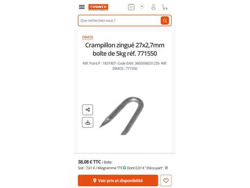 (x14 Kartons à 5 kg) Zinkbeschichtete Crampillon 27x2,7 mm oder 70 kg. Zum Befestigen von Drahtgitter an Holzpfosten
