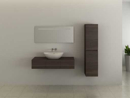 Typ: BL-9009-120-H084. Größe: 4-teiliges Set: 1 * Waschbecken - 1200x470x250mm, 1 * Waschbecken - 590x385x190mm, 1 * Spiegel - 1200x500x60mm, 1 * Seitenschrank - 1500x350x350mm. Ausgestattet mit: Spiegel mit Touchscreen-LED-Beleuchtung und Anti-Nebel-Technologie – Wasserhähne inklusive Klappabfluss – Soft-Close-Schubladensystem – Keramikwaschbecken – Vorgefertigtes Waschbecken.