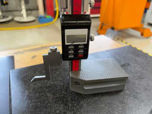 Inhalt bestehend aus einem digitalen Höhenreißer, einem Schraubstock