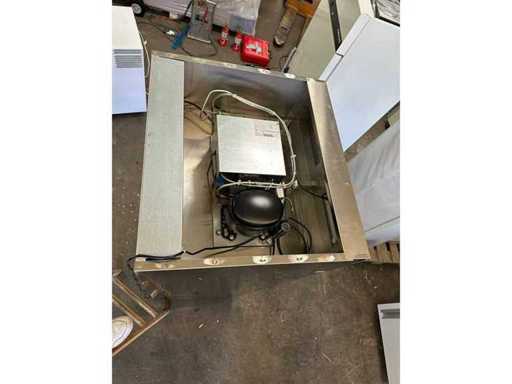 Tauwasserverdunstung: in beheizter Schale aus Edelstahl unter dem Kühlschrankboden