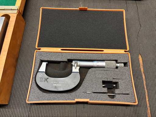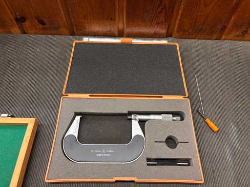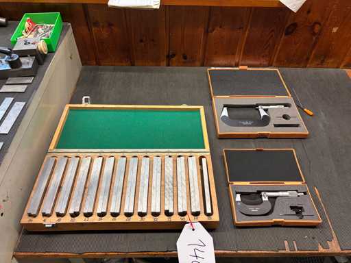 Inhalt bestehend aus: zwei Bügelmessschrauben sowie Parallelunterlagen.