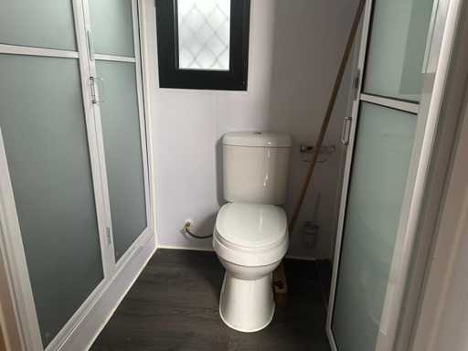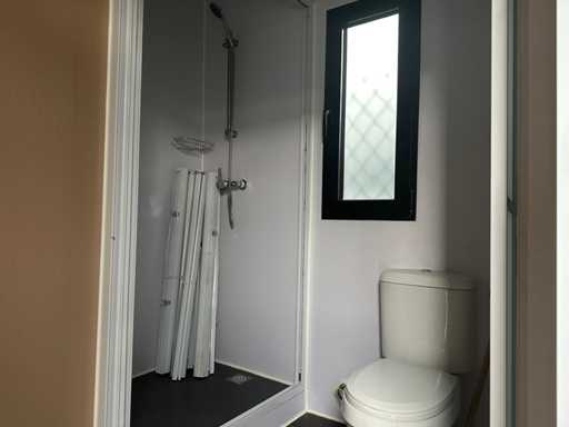 Ausgestattet mit 1 Haus; 1 Badezimmer; 1 Toilette; 1 Küchenblock; Kanalisation, Wasser- und Stromanschluss sind so einfach zu verbinden; Meterschrank; Türstopper; Löffellöcher; gebraucht; Der Käufer muss es selbst mit einem Kranwagen beladen; ohne Kantine, Tisch und Stühle;