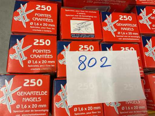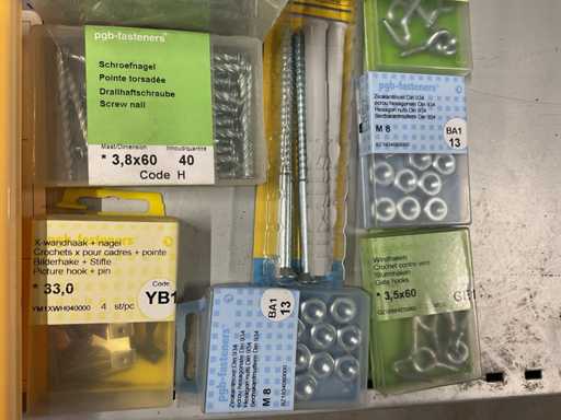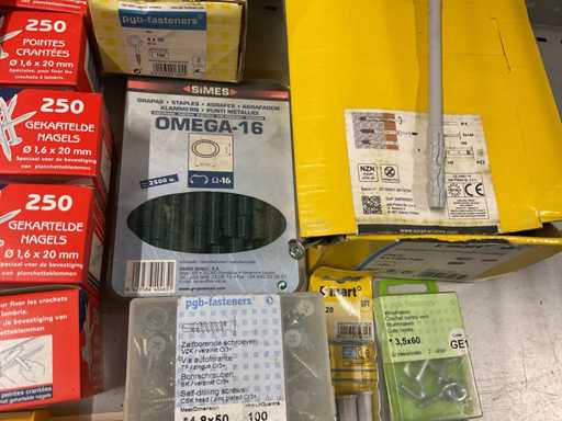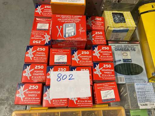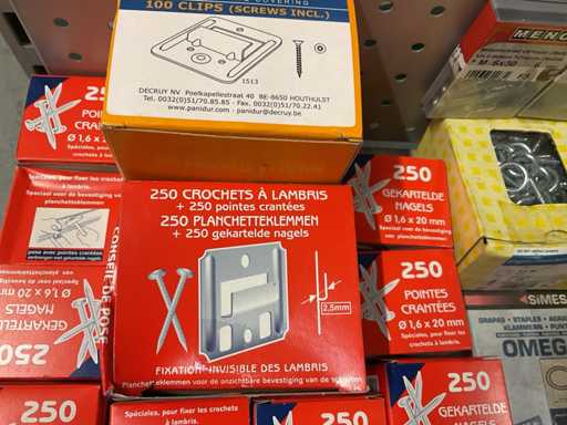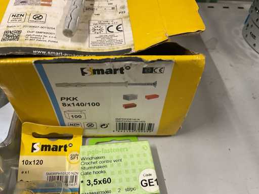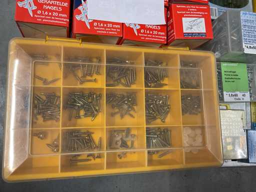 Schrauben; gezackte Nägel; Nagelstöpsel; Nüsse; Windhaken