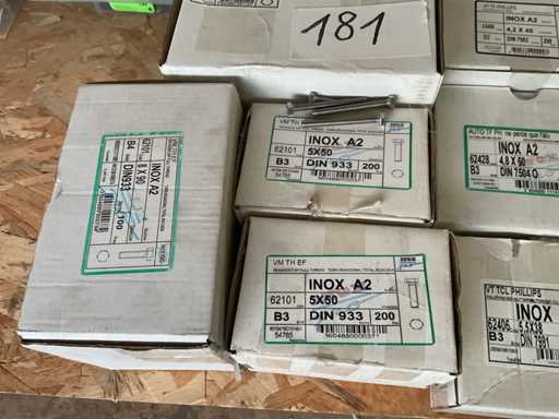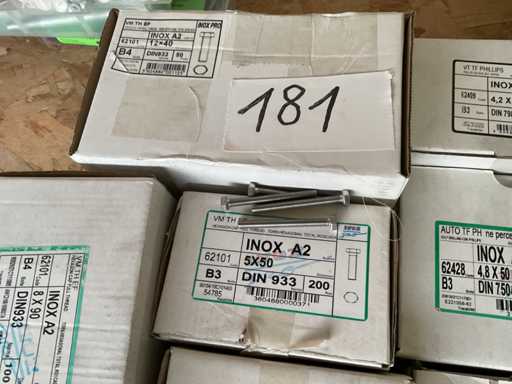 10 Kisten mit Edelstahlschrauben und -bolzen