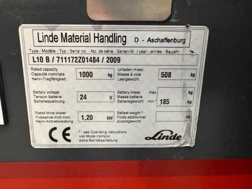 11/2016 S+UVV 11/2026 Linde L10 Hochhubwagen Hubwagen Ameise 722 Stunden