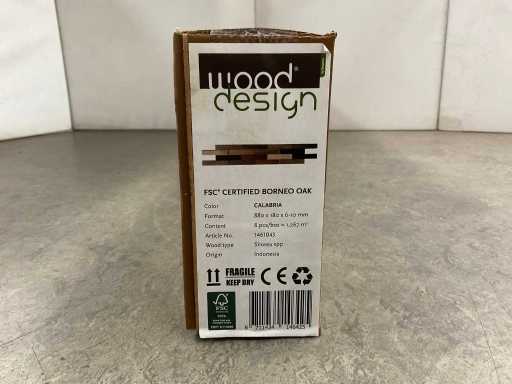 Wandpaneel Borneo Calabria Shorea Holz mit einem Inhalt pro Karton von 1.267 m². Dieses Produkt ist FSC-zertifiziert und enthält 8x 3D Holzleisten pro Karton.