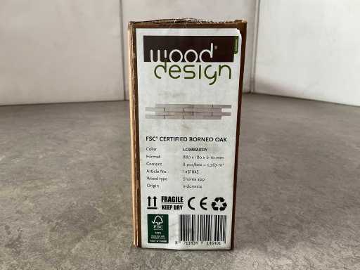 Wandpaneel Borneo Lombardei Shorea Holz mit einem Inhalt pro Karton von 1.267 m². Dieses Produkt ist FSC-zertifiziert und enthält 8x 3D Holzleisten pro Karton.