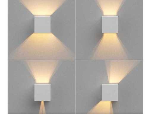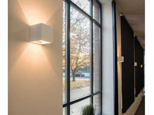 Diese Wandflecken passen sowohl in ein modernes als auch in ein klassisches Interieur und können mehreren Räumen zusätzliche Beleuchtung bieten. Das Licht dieser Wandflecken scheint sowohl nach oben als auch nach unten und kann sowohl nach oben als auch unten breiter und schmaler gemacht werden. Die Wandlampen sind spritzwasserdicht und können auch an oder in der Nähe feuchter Orte wie im Freien verwendet werden. Einfach zusammenzubauen und mit einer langlebigen LED-Lampe ausgestattet, die warmweiß ist und eine LED mit 8-Watt-Stärke hat. Größe 10,5 x 10,5 x 10,5 cm. Farbe: Weiß, matte Oberfläche. Spritzschutz: Ja, IP54, Typ: Wandarmatur, Besondere Merkmale: Dieses Produkt ist völlig neu