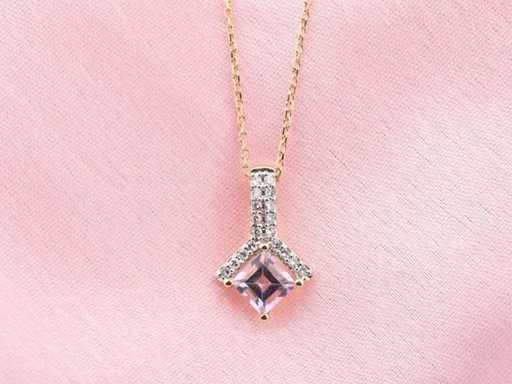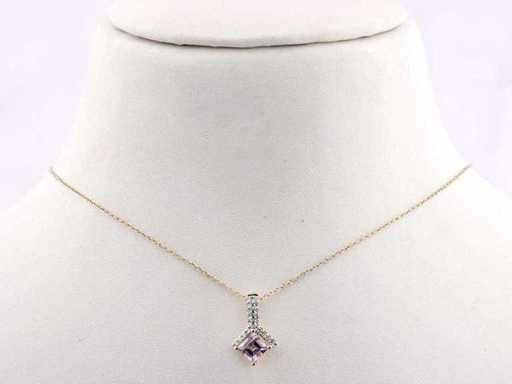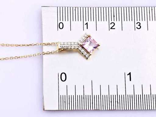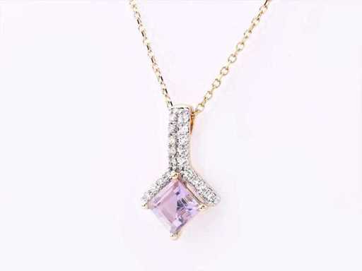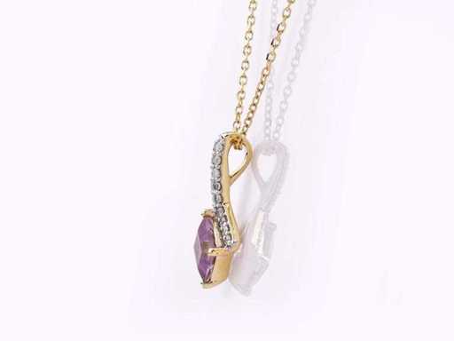 14 KT Gelbgold-Halskette mit Anhänger mit natürlichem Diamant und Amethyst
