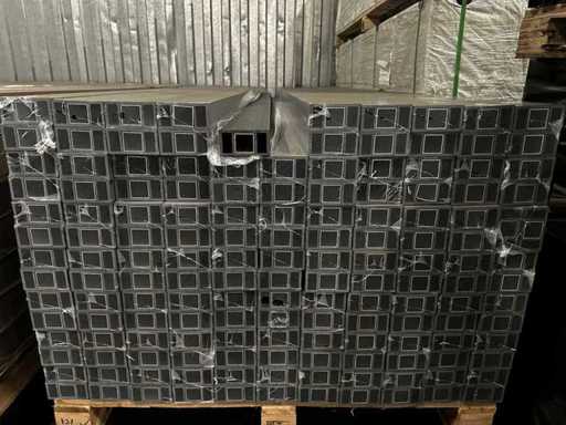 154 Stücke schwarze Verbundleisten / Verbundraumteiler, 300 cm lang. Enthält schwarze Aluminiumabdeckungen für unten und oben sowie eine Aluminium-Verstärkungsstange. Unbenutzt auf der Palette.