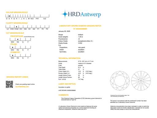 Jeder Diamant ist mit einem offiziellen Zertifikat ausgestattet.