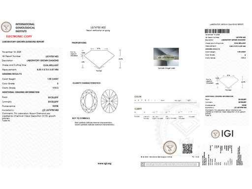 Jeder Diamant ist mit einem offiziellen Zertifikat ausgestattet.