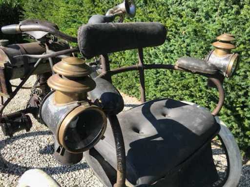 Seltener Allrader im Original- und Fahrzustand. Die Firma Noé Boyer & Cie aus Suresnes in Frankreich gehörte zur Société Gladiator und begann 1899 mit der Produktion von Autos, Dreirädern und Quadrirädern unter dem Markennamen Phébus. Die Produktion endete 1903. In England war der Markenname Automobilette. Ende 1800 und Anfang 1900 wurden Autos und Motorräder bei der wohlhabenderen Bevölkerung sehr beliebt. Besonders die Dreiräder (Dreiräder) und Vierräder (Vierräder) waren sehr beliebt. Viele Wettbewerbe wurden bis zu 1500 km entfernt organisiert. Aster war ein Autohersteller in Frankreich, aber auch ein bedeutender Lieferant von Motorblöcken für andere Marken. Diese wurden Ende der 1890er Jahre gegründet und bestanden bis 1910. Dieses Quadricycle ist zu 98 % original, die vorderen Fußbretter, einige Rohre und einige kleine Teile wurden ersetzt. Der Motor hat noch den originalen Kolben. Es gab keinen Grund, ihn zu ersetzen. Es lief wahrscheinlich nie viel und das erklärt auch den Zustand dieses Quadricycles. Einzigartige Chance, einen echten Pionier zu besitzen! Dreiräder sind selten zu verkaufen, und ein Quadricycle ganz sicher nicht. Startet und läuft perfekt.