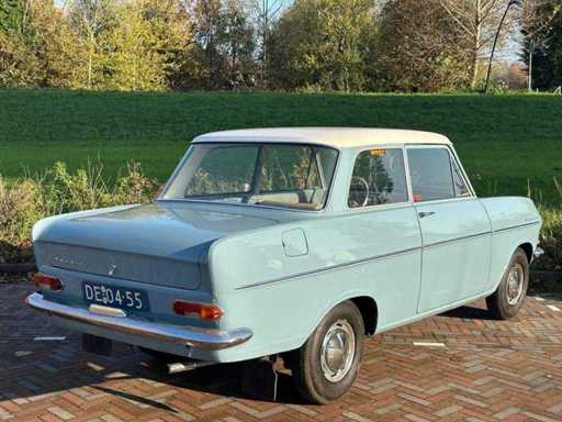 Dieses Exemplar ist ein Opel 10 KD 2 von 1963, in Blau gefertigt. Das Auto bietet einen zuverlässigen Vierzylindermotor und einen gut organisierten, funktionalen Innenraum. Dank seines ursprünglichen Designs und des gepflegten Aussehens ist dieses Modell ein hervorragendes Beispiel für Opels klassische Entwürfe aus dieser Zeit.