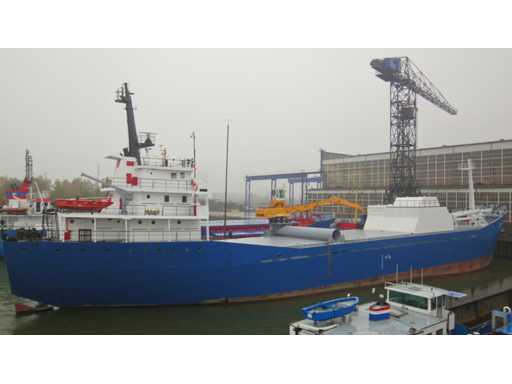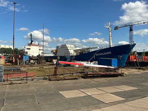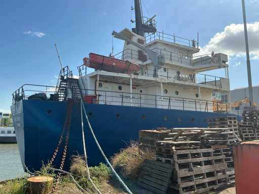 Das Schiff hat den Status 'aufgelegt', Hauptmotor und Getriebe sind nicht angeschlossen, die Betoninstallation ist zu etwa 90 % abgeschlossen und war nie im Einsatz, das Schiff ist nicht schiffbar, teilweise wegen fehlender Bordausrüstung. Um einen guten Überblick über dieses Grundstück zu bekommen, empfehlen wir Ihnen, vor der Abgabe eines Gebots einen Besuchstermin zu vereinbaren; auf dem Vorderdeck befinden sich Waren (einschließlich eines Freizeitbootes und Schotten), die nicht zum angebotenen Grundstück gehören. Es gibt keinen Asbest-Inventarbericht. Der Käufer muss das Schiff auf eigene Kosten bei den zuständigen Behörden registrieren.