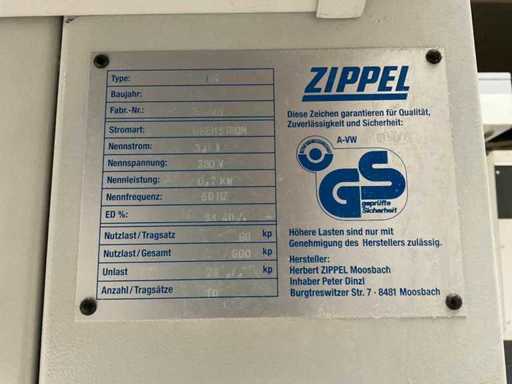 Spannung: 400 V, Leistung: 0,7 kW, Lastkapazität pro Plattform: ca. 60 kg, Gesamtlast: ca. 600 kg, Plattformbreite: 1370 mm. Ausgestattet mit: Dinzl DZ2002-Steuerung.