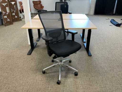 Schiebetür-Kleiderschrank (160x45x76 cm), 2x Bürostuhl und 5 Feldflaschenstühle.