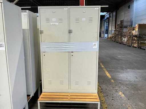 Bestehend aus einem 5x-Schrank (120x50x180cm) mit 2 Teilen mit hängendem/abschließbarem Teil, Bank / Basis (120x80x37cm)