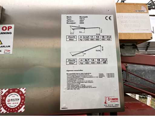 Tijdens de ophaaldag is een vorkheftruck met chauffeur beschikbaar, die kosteloos gebruikt kan worden. De maximale hefcapaciteit bedraagt 2,5 ton.