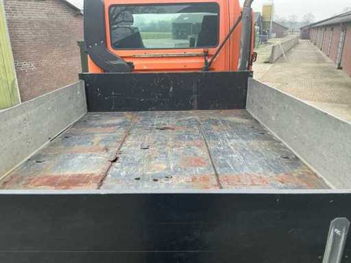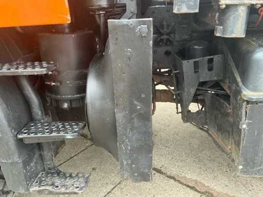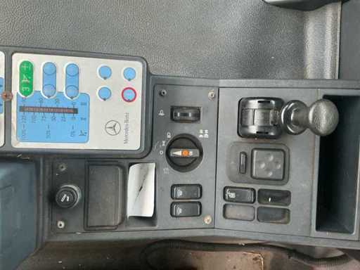 Ausgestattet mit: Kippfunktion, Halbautomatik, Hydraulik, Antrieb: 4×4, Festradantrieb, Fahrgestell: Portalachsen und Schraubenfedern, Motor: Mercedes-Benz OM904 LA, Typ: 4-Zylinder-Turbodiesel, Hubraum: ca. 4,25 l, Leistung: 177 PS, Drehmoment: 675 Nm, Emissionsstandard: Euro 3, Getriebe: 8 Vorwärts- und 8 Rückwärts-Schaltmotoren, PTO vorne, Zugkupplung, Luftfederungssitz, hintere Arbeitsleuchten, Leuchtturm.