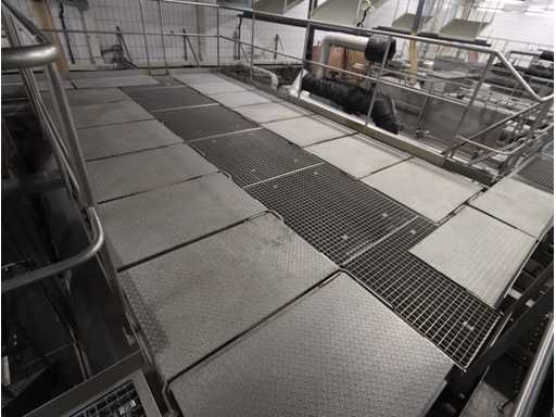 Dampf beheizt, Arbeitsdruck 6 bar, Schraube Ø ca. 1200x5000 mm, Wasserinhalt 1x 4,41 m³, 1x 2,83 m³, genutzte Bodenfläche 8500x4300 mm, ohne Treppenabsatz, Treppen und Gitterboden