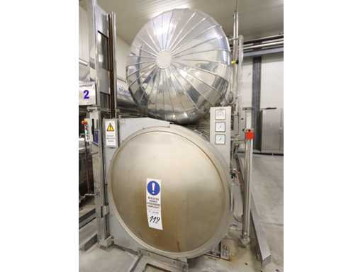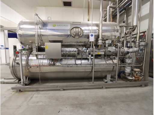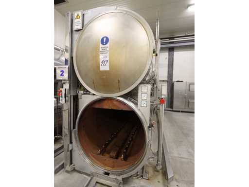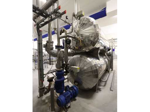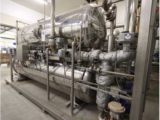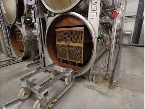 Geeignet für Kistengröße 810x810 mm, ausgestattet mit 1x Puffertank (5700 Liter) und Autoklaventank (6000 Liter), Tankgröße Ø 1400 mm, Länge 4750 mm, Aufzugstür, verschiedenen Pumpen und Steuerkasten, einschließlich 15 Kisten