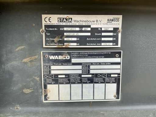 Ausgestattet mit: Aufnahme von Thorium S, sn. 493488.0, Druckluftbremsen, Lenkachse, Hubraum: 45 Kubikmeter, Pickup-Breite: ca. 170 cm, Fahrgestell: Tandemachse mit Blattfedern, Luftbremsen, Hydraulikabdeckung, hydraulischer Messerbar, Reifen: 710/50R26.5, Weitwinkel-PTO, Hydraulik. Erholte Lenkung, Hydr. Gelenkzugzug, 1000 U/min, Doppelwalze, Pickup-Breite ca. 170 cm, hydraulische Schottwand, hydraulische Schneidstange, Tandemachs-Blattfedern, gebremst, Doppelboden, hydraulisches hinteres Schott, Arbeitsbeleuchtung, abnehmbarer Behälter mittels Schließfächer, Equsielbak, Hydraulik. Gelenkige Deichsel, 1000 U/min, Doppelwalze, hydraulische Schneidestange, Schneidgerät mit Messern Ecosyl-Dosiergerät.