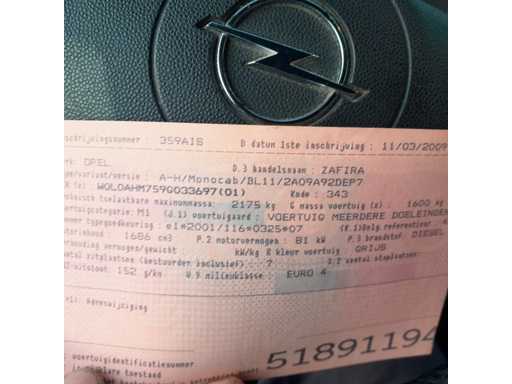 Opel Zafira 1.7 CDTI aus dem Jahr 2009 mit 7 Sitzen. Das Auto springt an und fährt, aber das Getriebe muss ausgetauscht werden. Der Motor läuft gut und ohne ungewöhnliche Geräusche. Das Auto verfügt über Parksensoren vorne und hinten.