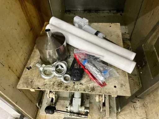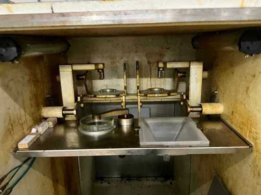 Innenraum: 850x1550x1500 mm, doppelte Kippeinheit mit 3,5 Liter, Mischer mit 3,5 oder 6 Liter, mit (2x) Expansionsmodul, hydraulischer Hebetisch 600x600 mm, Kippgeräte und Mischer mit Drehknopf, 9512 Betriebsstunden