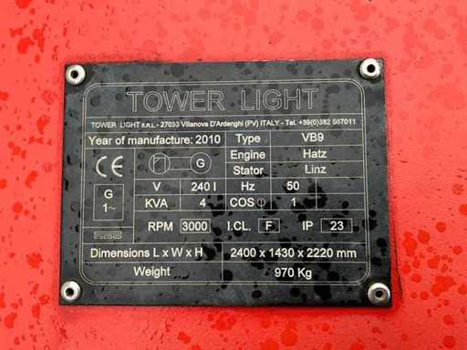 Ausgestattet mit einem "Hatz" 1-Zylinder-Dieselgenerator; Stunden 3882; ausgestattet mit 4 einzeln verstellbaren Lampen (4x1000W); Maximale Höhe 9 Meter