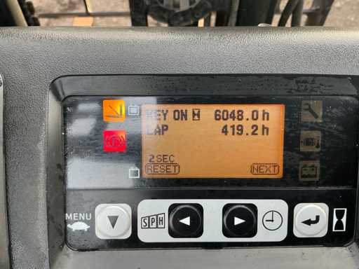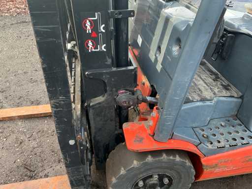 Gabel 1000 mm, Löffelbrett 950 mm, Duplexmast, Freiheber, Seitenschieber, Arbeitslampe, Anhängerauge mit Stift 25 mm, 48V Batteriepack, maximale Hubhöhe 3300 mm, maximale Hubkapazität 1600 kg