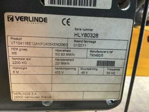 2011 Verlinde 2.200 KG x 8,16 m Oberleitungskran