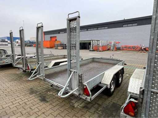 Länge 5140 mm; Breite 2300 mm; Höhe 2180 mm; Beschreibung: Rahmen aus verzinktem Stahl; feste Rampen; bindende Augen; Baggerschaufelstütze; Jockey Wheel; gehemmt; (der Käufer muss beim Transport auf der Straße eine gültige Registrierungsnummer angeben; einen 7- oder 9-poligen Stecker oder Adapter mit Kabel (Verlängerungskabel kann lokal gegen Gebühr erworben werden); möglicherweise eine zusätzliche Lichtleiste); deutsche Zulassungspapiere; Konformitätsbescheinigung; (VIE-YE883)