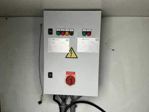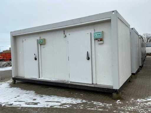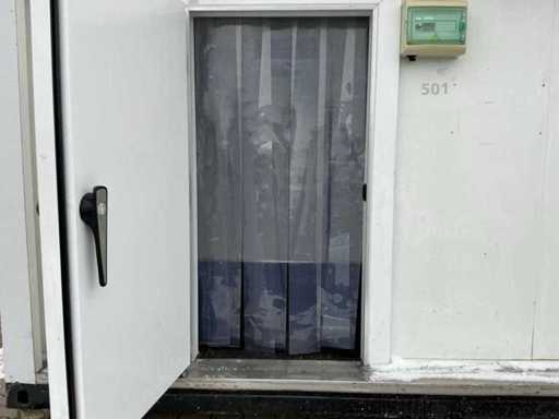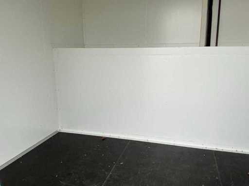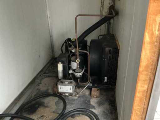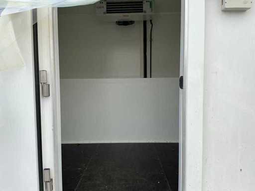 2x Außentür; 2x separates Fach (1x Kühlschrank / 1x Einfrierschrank); 400 Volt; 32 Ampere; Beleuchtung; Verdampfer; Kühlmotor; Drehschlösser; Betriebszustand; Der Käufer muss sich selbst um seinen Transport kümmern und den Lkw mit Ladekran öffnen; lxl