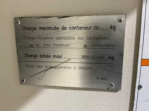 Tabletthöhe 55 mm; Ladekapazität pro Tablett 250 kg; Kapazität insgesamt 66 Tabletts; Mit 20x Tablett