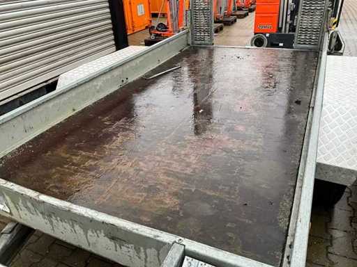 Länge 5140 mm; Breite 2300 mm; Höhe 2180 mm; Beschreibung: Rahmen aus verzinktem Stahl; feste Rampen; bindende Augen; Baggerschaufelstütze; Jockey Wheel; gehemmt; (der Käufer muss beim Transport auf der Straße eine gültige Registrierungsnummer angeben; einen 7- oder 9-poligen Stecker oder Adapter mit Kabel (Verlängerungskabel kann lokal gegen Gebühr erworben werden); möglicherweise eine zusätzliche Lichtleiste); ausländische Registrierungspapiere; ohne Konformitätszertifikat;