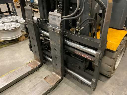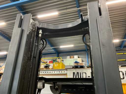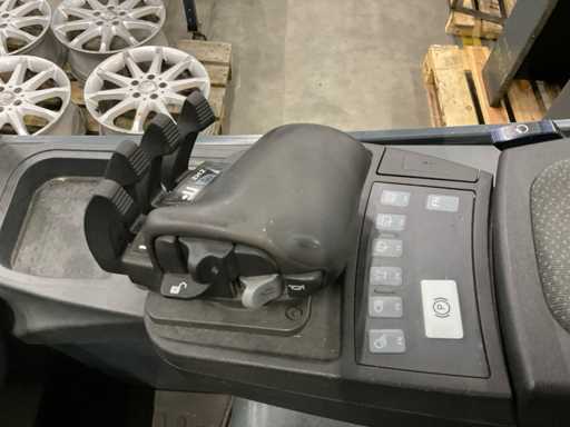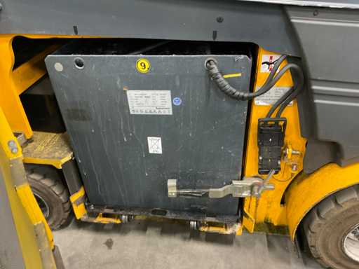 Ausziehbare und hydraulisch verstellbare Gabeln, Stundenstellung nicht ablesbar, Batterie leer, austauschbare Batterien. Kein Ladegerät.