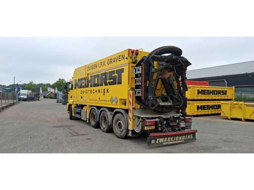 Reifen 70 %, Wartungshistorie verfügbar. Euro 6. Betriebszeiten: 1000, wurde auf 3500 MHz zurückgesetzt (Lüfter und Kompressor), Eimerkapazität 10 m³, hydrostatischer Antrieb, IKE rotierender Rotorkopf, Hydraulikarm. MOT 11-25. Der Lkw hat nur Saugposition 3, 1 und 2 sind gekoppelt.