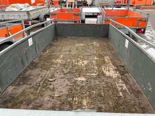 Länge 4650 mm; Breite 1800 mm; Höhe 1650 mm; Rahmen aus verzinktem Stahl; Holztrennwände; Kopfgestell; Jockey Wheel; gehemmt; (Der Käufer muss beim Transport auf der Straße eine gültige Registrierungsnummer angeben; einen 7- oder 9-poligen Stecker oder Adapter mit Kabel (Verlängerungskabel kann vor Ort gegen Gebühr gekauft werden); möglicherweise eine zusätzliche Lichtleiste; niederländische Registrierungspapiere; ohne Konformitätszertifikat;