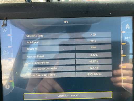 Kapazität: 3600 m3/Stunde, maximale Rotordrehzahl: 230 U/min, maximale Arbeitshöhe 2,5 Meter, ausgestattet mit: Kamerasystem, Raupen mit Pads, Kabine, Klimaanlage, elektrisch betriebene Haube, (500 Stunden zurück neuer Motor eingebaut)