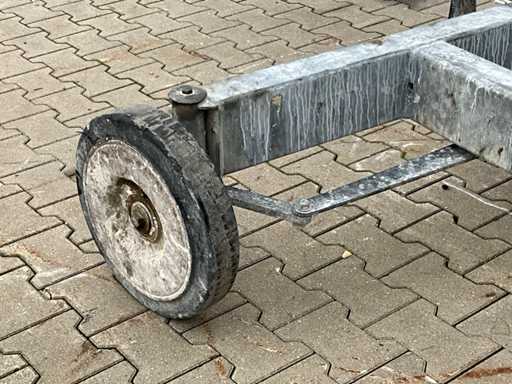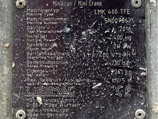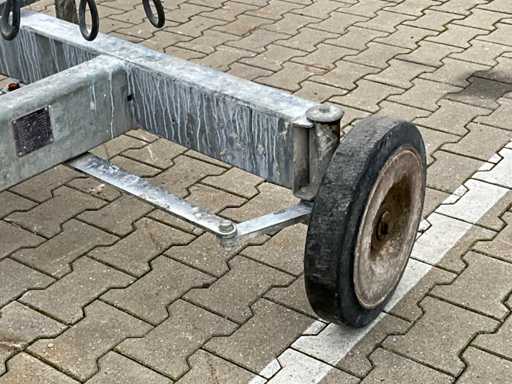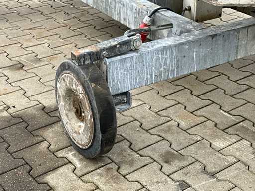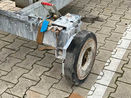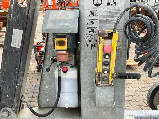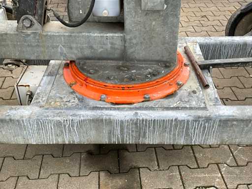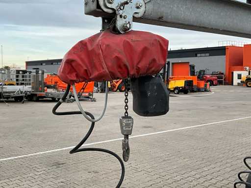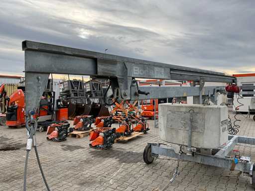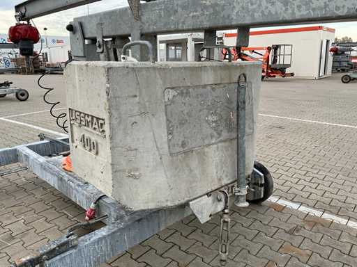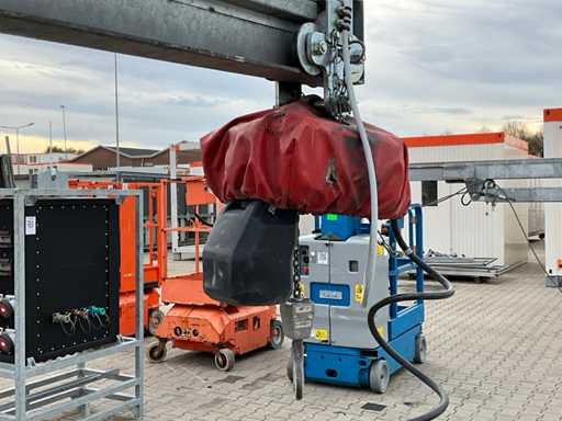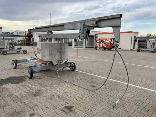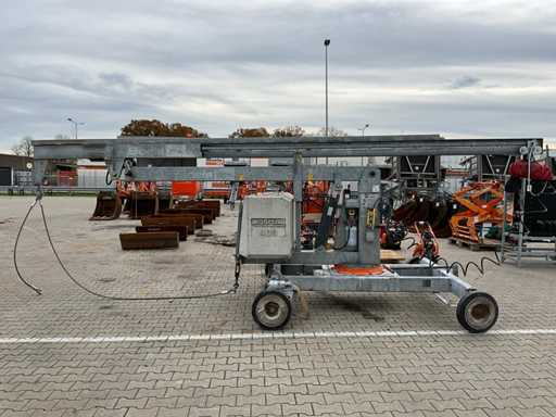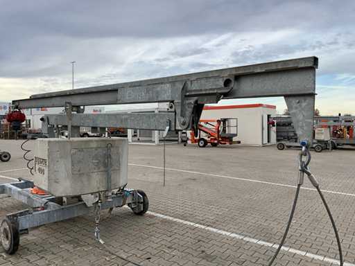 Stellift; mobil; verzinkter Stahlrahmen; Schiebewagen; elektrisches Hebezeug Heinrich de Fries CH2 400, 8-1; Schotterbetonblock; elektrohydraulische Demontage und Montage; Teleskopmast; Armlänge 5000 mm; Hakenhöhe 4500 - 6000 mm; Stahlseil für Überbau; Betriebszustand nicht überprüft;