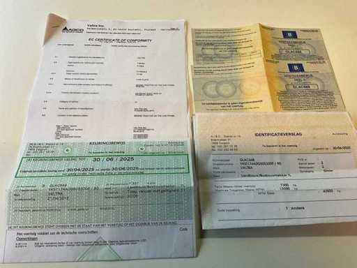 Ausgestattet mit Vorderachse und Führerstandsfederung, Luftdruck- und Hydraulikbremsen, Vorführungssensor, verlängerter Kugelzuckstange, Lenkstangenkugeln, belgische Borddokumente vollständig, Schlüssel in Ordnung
