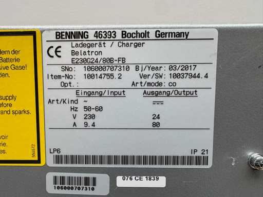 2017 Benning 24V 80A Gabelstapler Hubwagen stacker Ameise Ladegerät