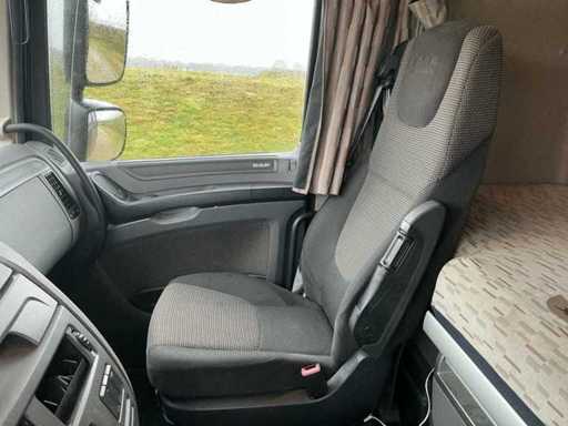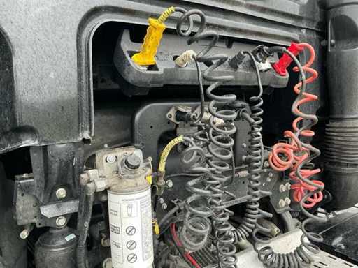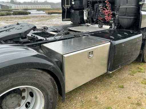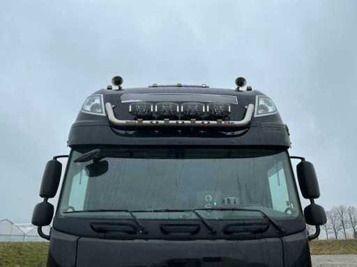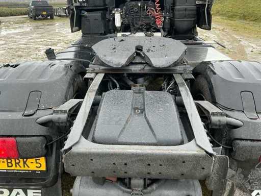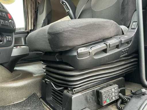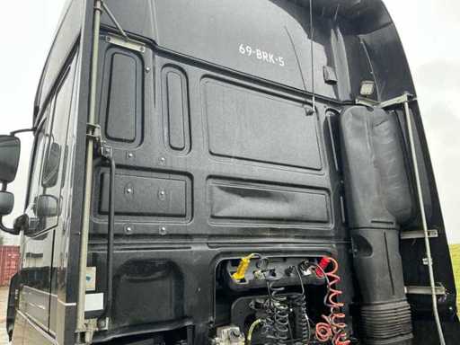 Ausgestattet mit: Super-Space-Kabine, Retarder, 2. Ladebett, Rema-Anschluss, Luftlautsprecher, Klimaanlage, Kühlschrank, 220V, Magnatron-Anschluss, Edelstahlbox an der Seite, wasserquietschendem Diesel, Stroboskop im Grill. Der DAF XF 460 (Euro 6, Typ MX-13) ist ein Traktor mit 460 PS, einem maximalen Gesamtgewicht von 18.000 kg, einer maximalen Kombination von 44.000 kg, einer maximalen Vorderachslast von 8.000 kg und einer maximalen Hinterachslast von 11.500 kg. ausgestattet mit E4-Typenzulassung.