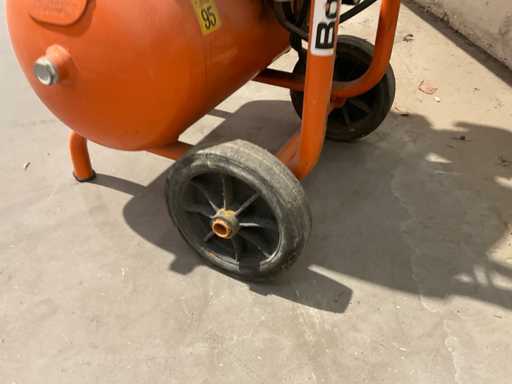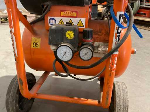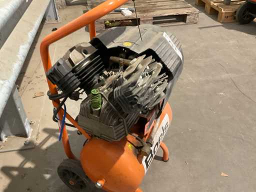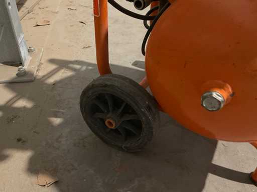 mobil; Schiebegriff; Stahlrohrrahmen; 2-Zylinder-Elektromotor; horizontaler Stahldruckbehälter mit einem Fassungsvermögen von 22 Litern; Wasserschaden;; kaputt;