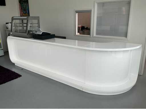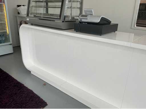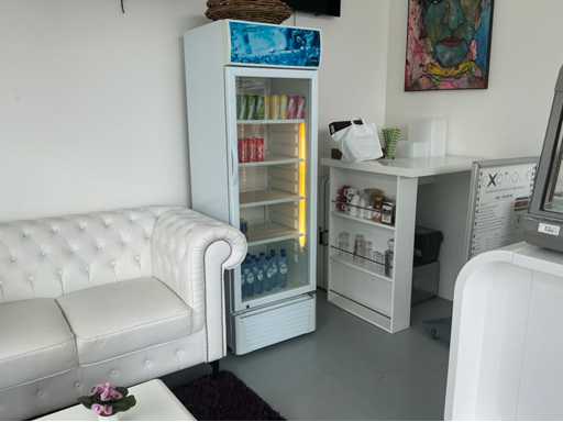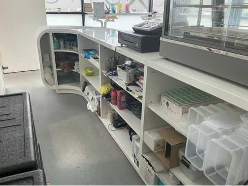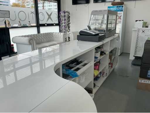 Bestehend aus 2 Bänken aus dem Jahr 2017, Gruppo Corso Theke 2017 weiß, Teppich, 2017 Beistelltisch, 2017 Hakvoort Kühlvitrine, 2016 Wärmevitrine 1840W, 230V. Samsung 2017 Wandfernseher 3x und Shop-Kasse. Größe der Theke : 3820x1000x600 mm. Abmessungen der Bänke: 1670x840x880 mm. Abmessungen Kühlvitrine: 600x56x190. Abmessungen der Heat-Vitrine: 900x600x480mm. Abmessungen Wandfernseher: 900x530 mm.