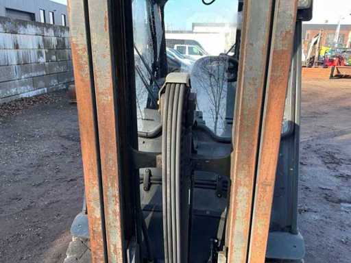 Gabeln 1000 mm, Löffelbrett 1150 mm, Sperrholzmast, Seitenschieber vorbereitet, Löffelstreuer vorbereitet, Freiheber, LED-Arbeitslampe, Abschleppauge, maximale Hubhöhe 4700 mm, maximale Hubkapazität 2500 kg