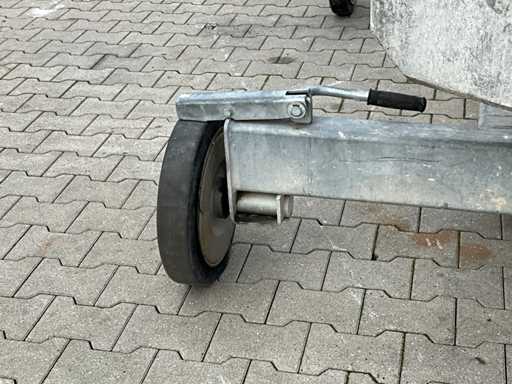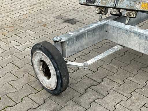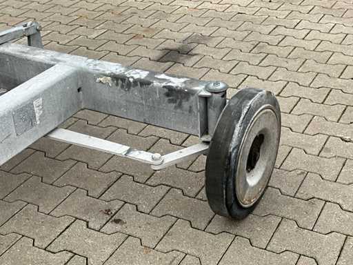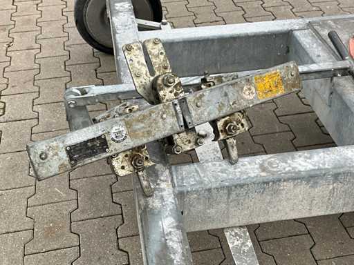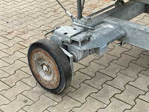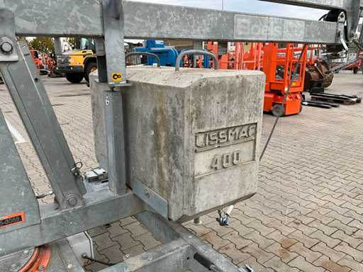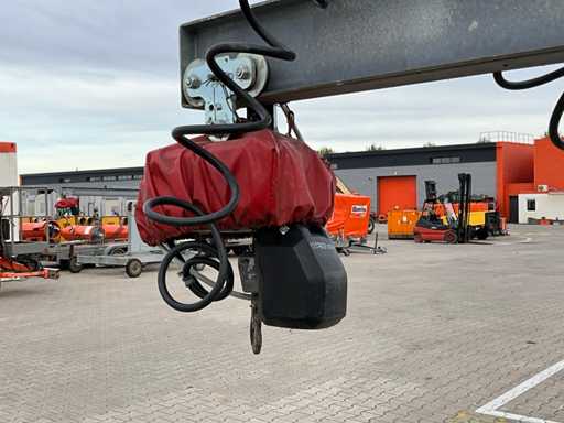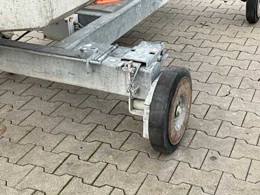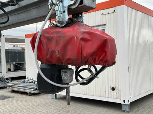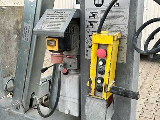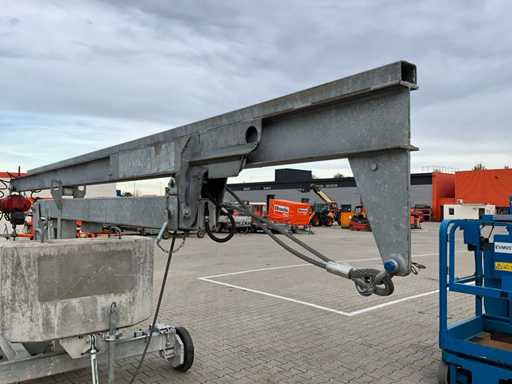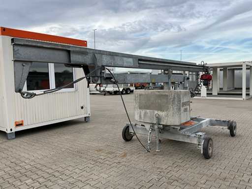 Stellift; mobil; verzinkter Stahlrahmen; Schiebewagen; elektrisches Hebezeug Heinrich de Fries CH2 400, 8-1; Schotterbetonblock; elektrohydraulische Demontage und Montage; Teleskopmast; Armlänge 5000 mm; Hakenhöhe 4500 - 6000 mm; Stahlseil für Überbau; inklusive Klebeklemme; Betriebszustand nicht überprüft;