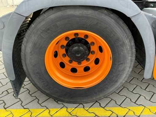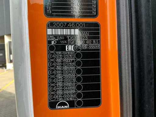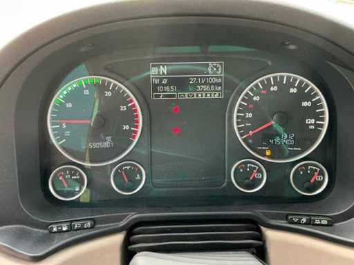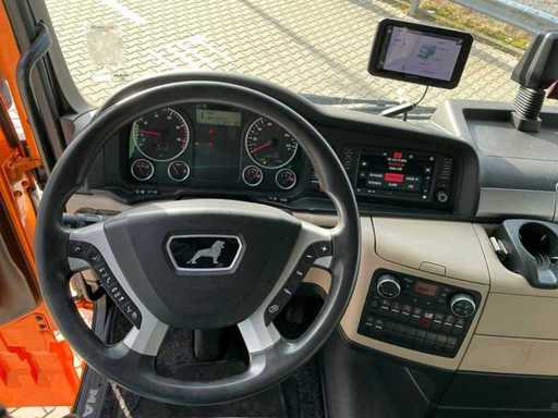 Masse in betriebsbereitem Zustand 7629 kg, Masse des unbeladenen Fahrzeugs 7529 kg, technisch maximal. Fahrzeugmasse 19.000 kg, erlaubt maximal. Fahrzeugmasse 19.000 kg, maximale Masse der Baugruppe 50.000 kg, 6 Euro, Abstand von der Fahrzeugfront bis zur Kupplungsmitte 449 cm, Parkkühler, 2. Bett, Kühlschrank, 2x Kraftstofftank