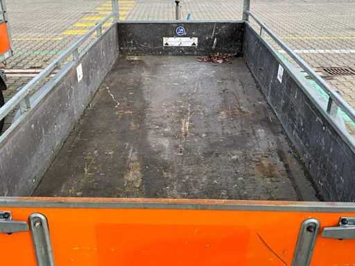 Länge 4650 mm; Breite 1800 mm; Höhe 1650 mm; Rahmen aus verzinktem Stahl; Holztrennwände; Kopfgestell; Jockey Wheel; gehemmt; (Der Käufer muss beim Transport auf der Straße eine gültige Registrierungsnummer vorlegen; einen 7- oder 9-poligen Stecker oder Adapter mit Kabel (Verlängerungskabel kann vor Ort gegen Gebühr erworben werden); möglicherweise eine zusätzliche Lichtleiste; ohne Zulassungspapiere; ohne Konformitätsbescheinigung;